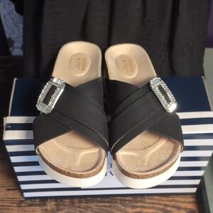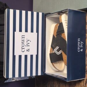 Crown & Ivy Black Sandals with Sparkling Buckle