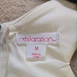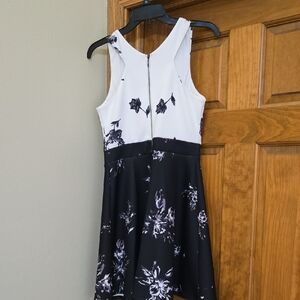 EUC ivory and black bold floral design zip up back flared dress. Perfect for elegant events.