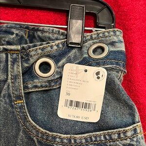 These low rise cargo jeans are the perfect trendy pair to add to your wardrobe featuring multiple pockets with zippers and buttons, grommets around waist. Low rise at 34” for waist hips 42” rise 11” inseam 30”. Slightly flared and 100% cotton. NWT. Ballistic blue color