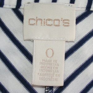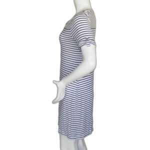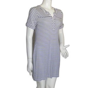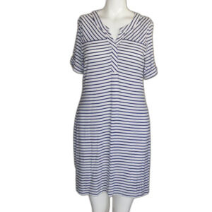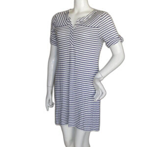 CHICO'S Mini Dress, 0/S, White, Navy Stripes, Short sleeve, Split neck, Jersey