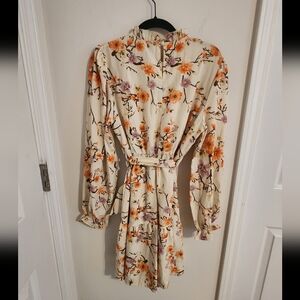 ❤️SHEIN Cream Cherry Blossom Long Sleeve Dress. Large