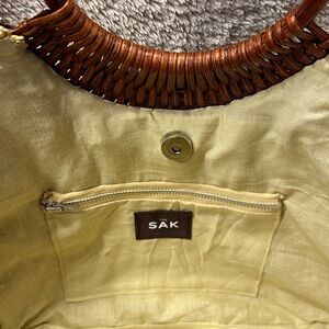 Oldie Cutie. Amazing condition. Double wooden handles. Open top with snap closure (snap fastener works perfectly). Lined interior with one zippered pocket (zipper works perfectly) and open pouch. Should you have any questions, please do not hesitate to ask. Thank you for visiting my closet. 💐