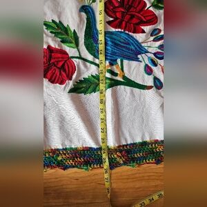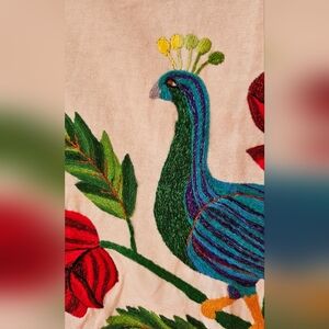 Beautiful table napkin featuring an embroidered peacock with vibrant colors. Perfect for adding a touch of elegance to the kitchen/ Handmade