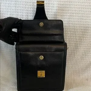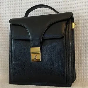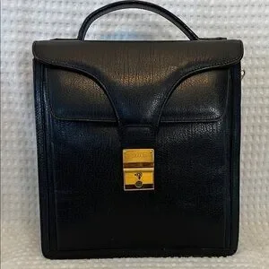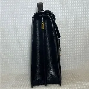 Bally Black Leather Briefcase with Gold Accents