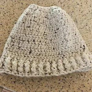 Hand Knit Yarn Crochet Winter Hat with Ponytail Hole