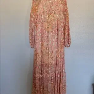 Ciebon Crissta Metallic Print Light Pink Long Sleeve Maxi Dress Size XS