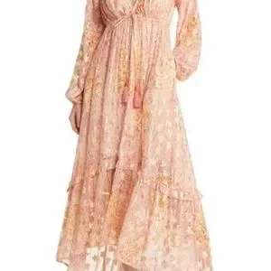Ciebon Crissta Metallic Print Light Pink Long Sleeve Maxi Dress Size XS $160 NWOT