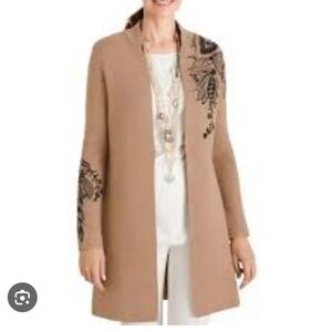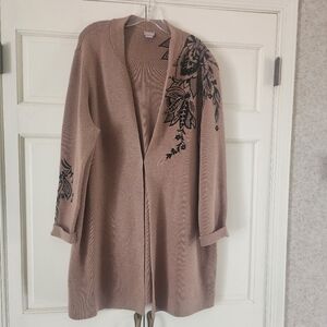 Chico's cardigan with elegant floral embroidery. Perfect for layering.New no tag