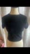 This black crop top from Garage features a fitted design with short sleeves, offering a sleek and modern look. The solid black knit material and crew neckline make it a versatile addition to any wardrobe.