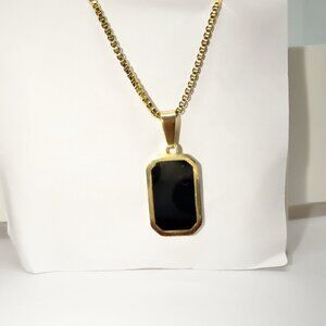 18K Gold Plated Stainless Steel Necklace Black Pendant