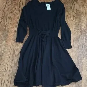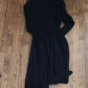 Chic black dress with long sleeves. Features a flattering waist tie. Ideal for versatile styling.