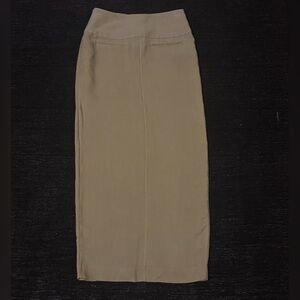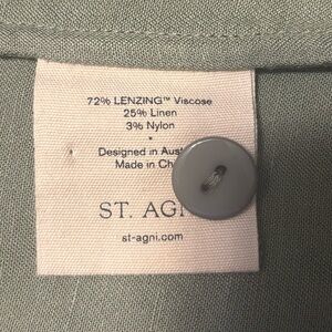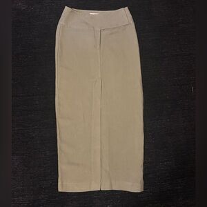 This column skirt from St. Agni features a wide waistband, front slit, 7/8 length, back welt pockets, and a fitted silhouette. It is crafted from 72% LENZING™ Viscose, 25% European Flax, and 3% Nylon.