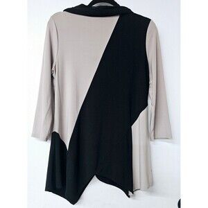 Joseph Ribkoff Work 2 Tone Color Long Sleeve Asymmetric Stretch Cowl Neck Top