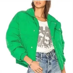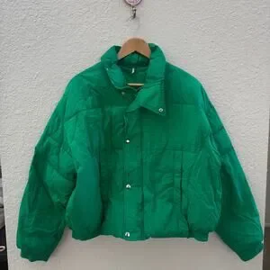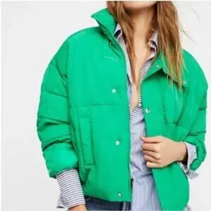 EUC Free People Green Slouchy Oversized Cropped Puffer Coat