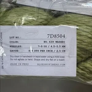 Blue Sky Fiber Organic Cotton baby blanket knitting project.