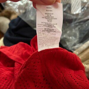 NWT Joan Rivers Open-Front Crochet Cardigan Red Sweater L