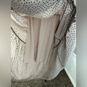 Trendy dress with black polka dots on a cream background. Ideal for casual outings.