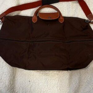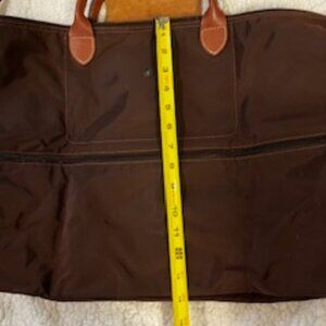 It's the real deal! Longchamp expandable tote, chocolate brown canvas; water resistant. GREAT for travel, easily expands to larger size if needed. Secure zipper top to safely store your things. Great condition!