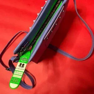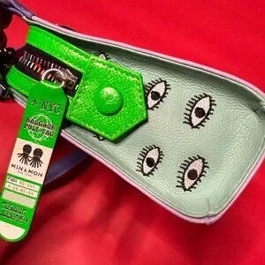 DETAILS: With dreamy lavender and lilac leather, minty interior embroidered with wide-eyed faces, and a neon green zipper pull that adds a pop of energy, it’s a bag that turns heads and starts conversations. Finished with the signature Min & Mon “Cosmic Journey” NYC charm tag, this is downtown whimsy meets modern edge.