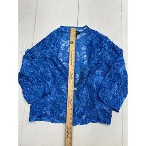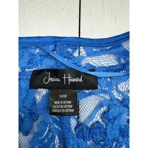 Jessica Howard Solid Blue Lace Long Sleeve Lingerie Cover Up Womens Size 14W