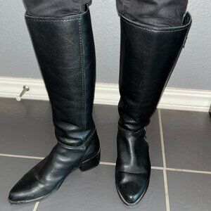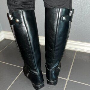 AQUATALIA Geovanna Black Leather Knee High Side Zip Boots - EUC - Women's 8.5