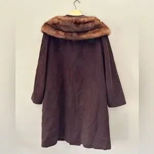 Vintage 60’s Ladies Brown Fox Fur Collar Mink Button Down Long Trench Coat