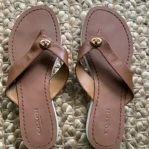 Chic and comfortable tan sandals by Coach. Ideal for casual wear.