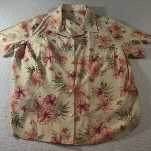 Liz Golf Yellow Red floral short sleeve collar blouse Women Size 2X