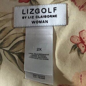 Add a pop of color to your wardrobe with this Liz Golf blouse in a vibrant yellow and red floral pattern. The short sleeve, collared neckline design is perfect for a casual day out or a dressed up occasion. This blouse is made from 100% silk, ensuring a comfortable fit all day long. Available in size 2X, this blouse is a must-have addition to any fashion-forward woman's closet.