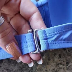 Stylish light blue bikini top with adjustable straps. Perfect for beach days.
