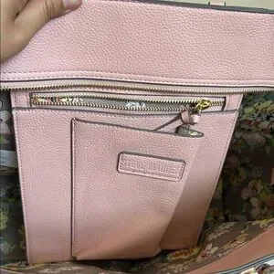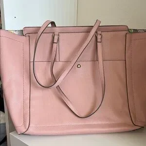 Elegant pink tote with a floral scarf accent. Ideal for daily use.