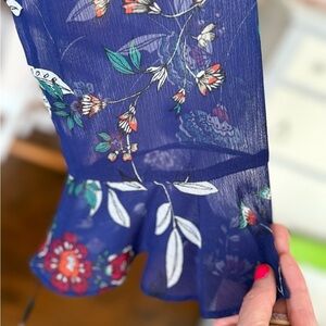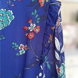 NWT! CALVIN KLEIN Blue, Red, White, and Black Ruffle Hem Floral Dress - Size 14