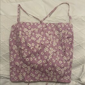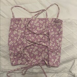 Stylish purple pants with matching top. floral pattern perfect for casual outings.