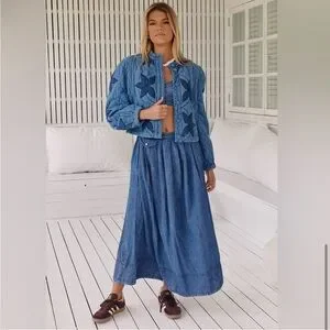 Keywords: cozy boho jacket, perfect fall jacket, Free People Quinn, quilted denim jacket, boho chic outerwear, FP jacket, indigo quilted coat, Free People NWT medium, chambray quilted jacket, fall layering piece