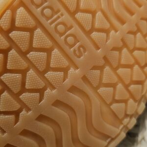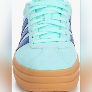 Stylish Adidas va court bold sneakers in mint green with blue stripes and a brown sole. size 8.