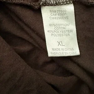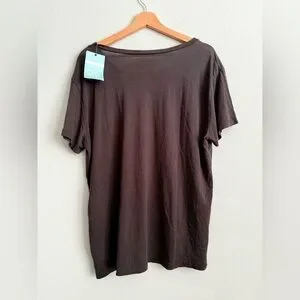Stylish brown t-shirt featuring a gold 'Cheers' print in multiple languages. Perfect for casual wear. Soft and stretchy. NWT
