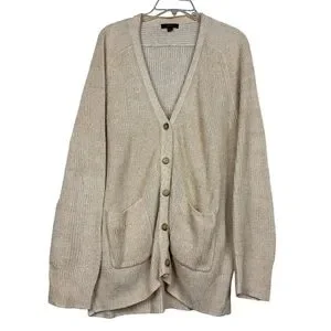 J Crew Linen Cotton Button Relaxed Cardigan Sweater