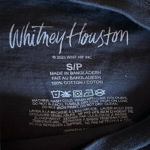 Black t-shirt featuring a Whitney graphic design. In good pre-owned condition - some cracking. Size small - 16.5 inches from pit to pit and 24 inches from shoulder to hem. Thank you for looking!