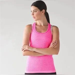Lululemon Swiftly Tech Racerback Tank Top Hip Length Heathered Raspberry Glo Light in size 8 with very minimal wear if any. It is in excellent condition with little to no flaws. Originally sold for $58. Bag included.