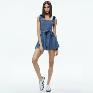 EUC ALICE + OLIVIA SOLD OUT ROZ SMOCKED CHAMBRAY ROMPER SZ 10