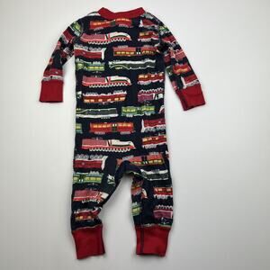 Hanna Andersson Organic Trains Sleeper. Size 70, 9/12m. GUC, wash wear/fade, general wear.