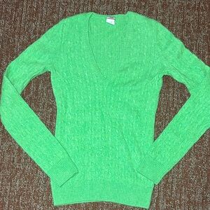 J. Crew Vibrant Green Women's cashmere Sweater soft long sleeve cable knit small