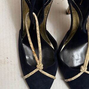Step out in style with these elegant black women's shoes. Perfect for any occasion, these shoes offer both comfort and sophistication…. There are some staining to front cords on the shoe but can be cleaned… in GOOD CONDITION.. - price reflects MAKE ME AN OFFER….