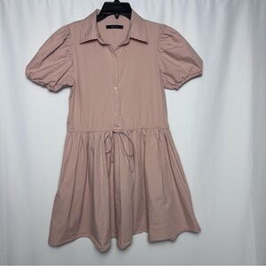 Deluc Gasus women’s mini dress XS Pink Romantic Puff Sleeves Preppy Babydoll