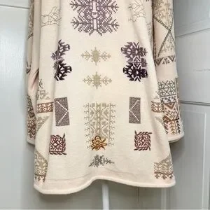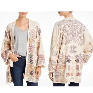Johnny Was Biya Fenella Embroidered Kimono Open Front Cardigan Knit Sweater in Alabaster