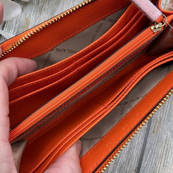 Michael Kors Jet Set Travel Large Saffiano Leather Quarter-Zip Wallet Bag Purse