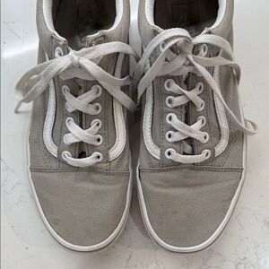 Old Skool Vans sneakers. Gray canvas with white accents! In great condition. Men’s 8.5, women’s 10! Make me and offer;)