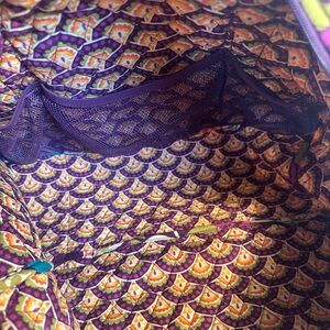 Plum Crazy Vera Bradley Plum Crazy Duffle Travel Bag. The back is in excellent condition. Please see pictures for details and approximate measurements.