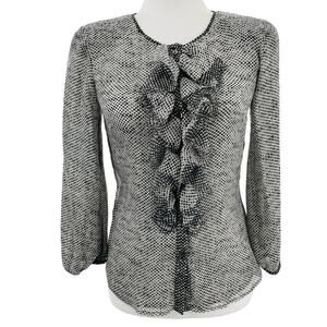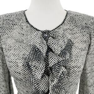 Lida Baday Black & White Silk Polka Dot Sheer Ruffle Blouse Women Sz 2