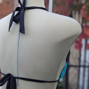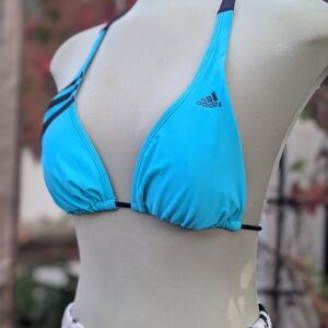 Stylish Adidas bikini top in blue with black accents. Perfect for beach days.